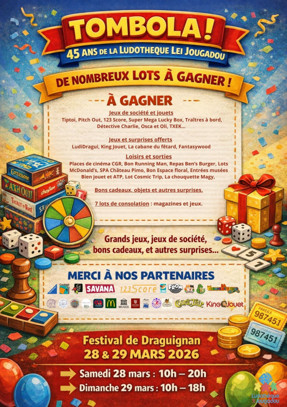 À vos agendas, la Ludothèque lei jougadou organise sa 8ème édition du festival du jeu, le samedi 28 et dimanche 29 mars 2026, au complexe Saint-Exupéry !