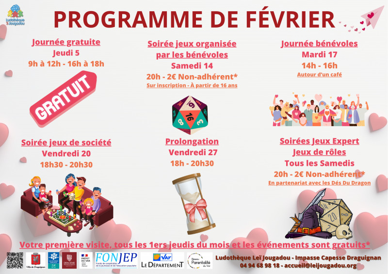 Samedi 14 : Soirée jeux organisée par les bénévoles de la ludothèque, à partir de 20h, l'inscription est obligatoire pour les participants dès 16 ans ! 🃏